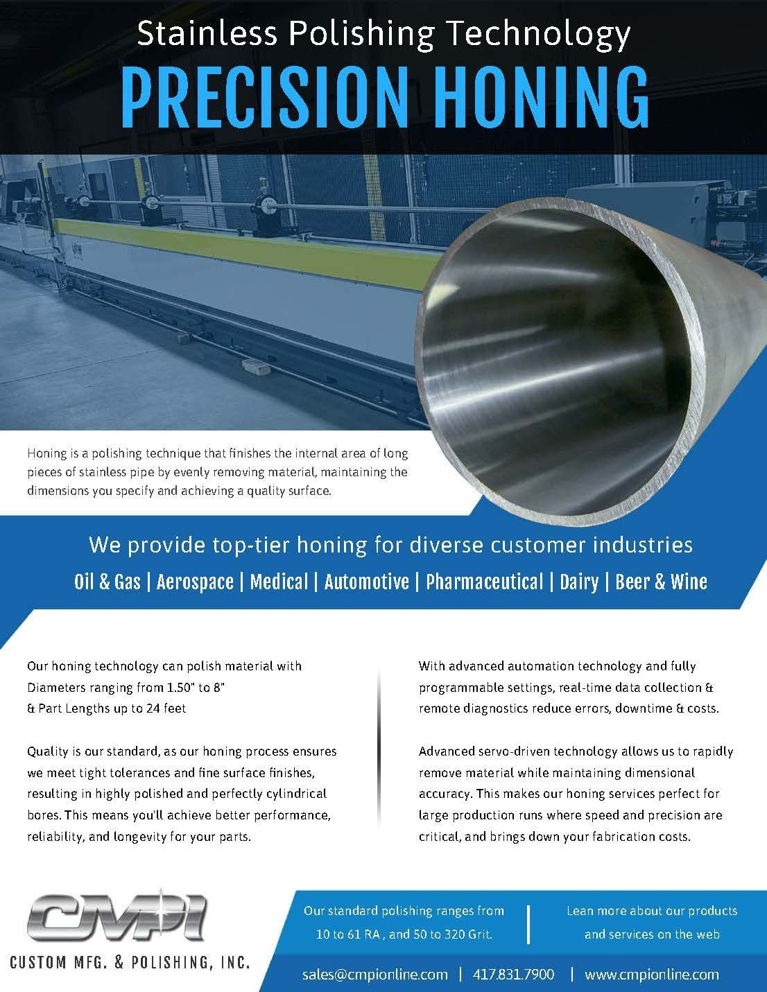 Procuring honed stainless steel has never been easier than giving CMPI a quick call. Pass this helpful guide to your material procurement team